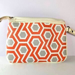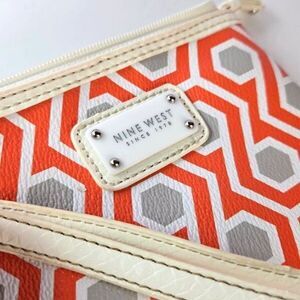 Nine West Faux Leather Wristlet Geometric Orange White Gray