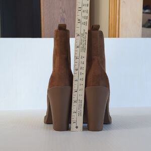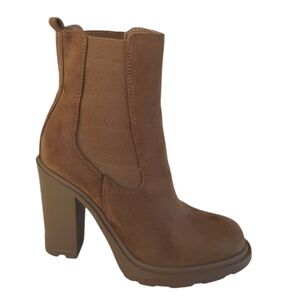 Nine West Faux Suede Ream Chelsea Heeled Boots 7M Cognac Pull on Style