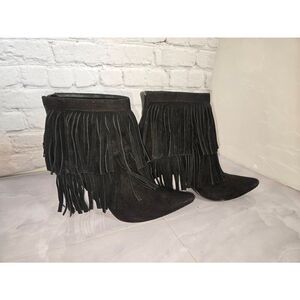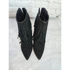Nine West Fireball Womens Size 8M Black Fringed Bootie Heels