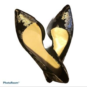 Nine West Flats Back Gold Metallic Foil Floral 5.5M Pointy Toe Shoe Career