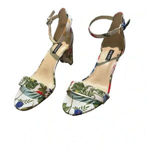 🌸 Nine West Floral Ankle Strap Block Heel Sandals Size 9 🌸