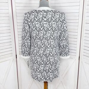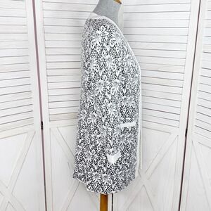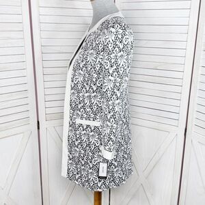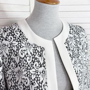 Nine West Floral Brocade Open Front Long Blazer Topper Jacket Black White 2