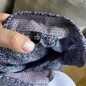 Long sleeve floral blue/pink toned button down shirt. Nine West. Worn 2x EUC. Size S neck 14-14.5
