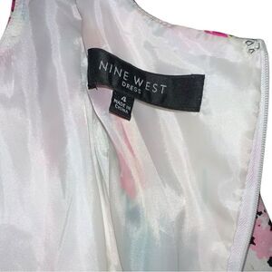 This Nine West fit & flare dress features a stunning vibrant floral print on a white background, making it the perfect piece for spring and summer events. The structured bodice and flared skirt create a flattering silhouette, while the square neckline and wide straps add a touch of elegance.