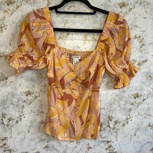 Nine West Floral Puff Sleeve Top l SIZE XS