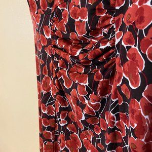 Nine West Floral Red & Black Sleeveless Summer Midi Dress Size XS
