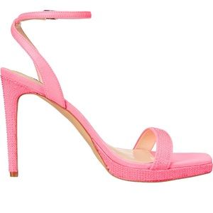 Round Pump up the glam with the Zadien strappy high heeled sandals. These sky high stiletto, barley there sandals are embellished with tonal rhinestones on the straps, heels, and along the front platform.Color-Neon Pink