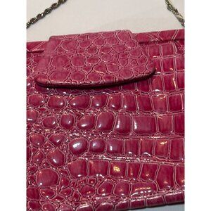 Nine West Fuchsia Croc-Embossed PVC Clutch With Silver Chain Strap new