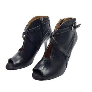 Nine West Gaige Open Toe Black Leather Heeled Bootie Women Size 7.5 Side Zip