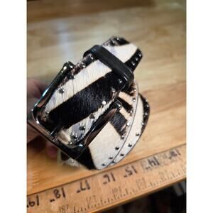 Nine West Genuine Cowhide Leather Belt Black White Studded Small 36"