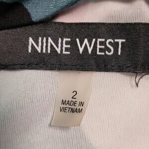 Nine West Geometric Blouson Dress Sz 2 Indie Artsy Graphic Elastic Waist Midi