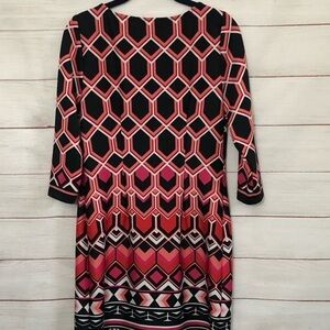 Nine West Geometric Dress Size 6 Red, Pink, White and Black Polyester and Elastane Approximate Measurements: Chest: 18 Length: 36