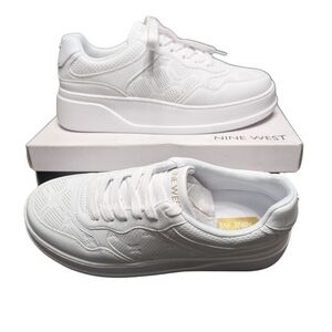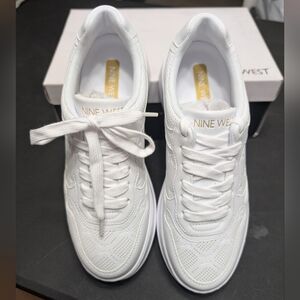 Nine West Gingy3 All White Lace Up Platform Sneakers Classic Design Size 10M