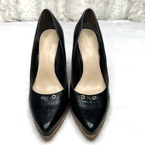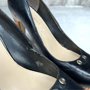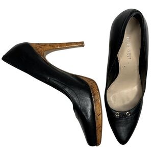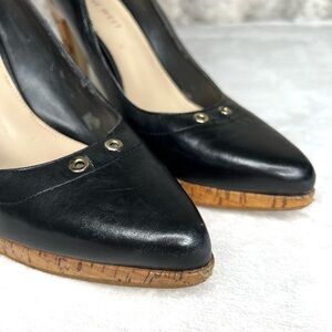 Nine West Gionata Leather and Cork Platform Heels Black 7M