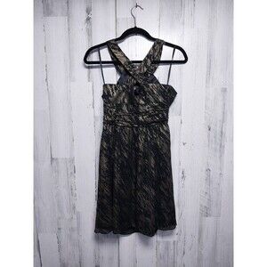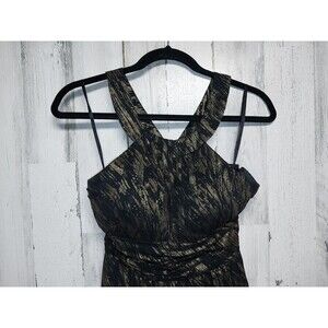 Nine West Glam Rocks Metallic Gold & Black Halter Dress 6P