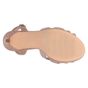 Turn heads and heat up the dance floor with the Nine West GoBig Platform Sandal. Featuring a stunning rhinestone-studded strappy upper and a sky-high 4.75" covered stiletto heel, these sandals are the epitome of glam. The adjustable buckle strap ensures a secure fit, while the 1.25" platform offers added height and comfort. Perfect for any special occasion, these sandals boast a fabric upper, synthetic lining, and a durable fabric & synthetic sole. Brand New without original box