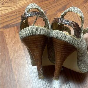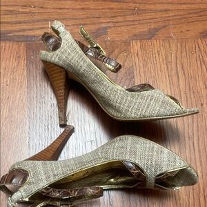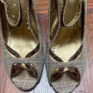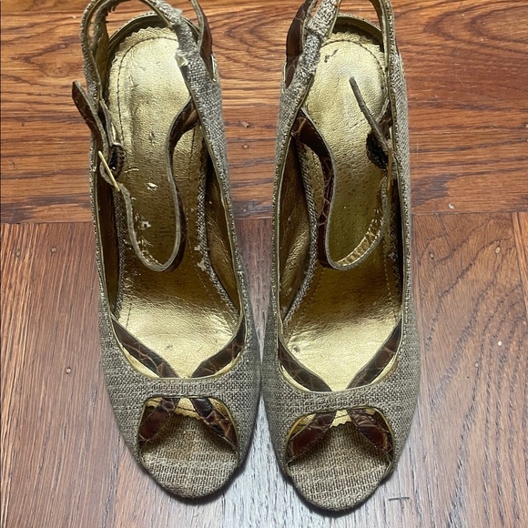 Chic gold peep-toe heels. Ideal for stylish outings.