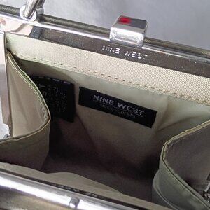 A chic Nine West mini evening bag with a sleek satin finish and structured top-handle design—perfect for formal events, parties, or minimalist everyday style.