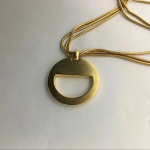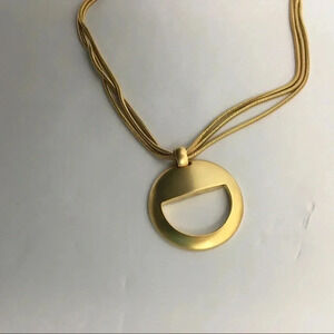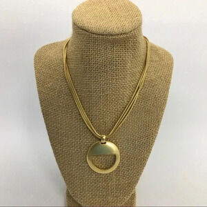 Nine West Multi Strand Gold Tone Circle Pendant Necklace. There is a hang tag that has NW on it. There is a little wear by the clasp. Lobster clasp. There is a extender. See pics for conditions. No Modeling or trades. P31