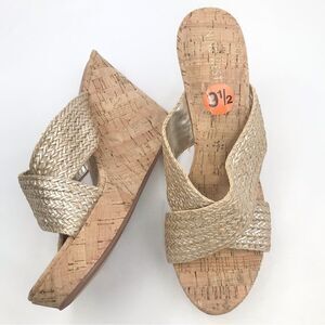 Nine West Gold Weave Crisscross Cork Wedge Sandals NEW