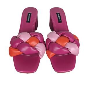 Nine West Got It Pink Square Toe Slip On Block Heel Sandals Size 7.5