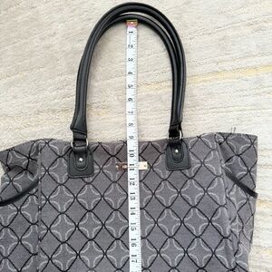 Nine West Gray Geometric Print Tote Bag | Black Faux Leather Trim