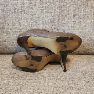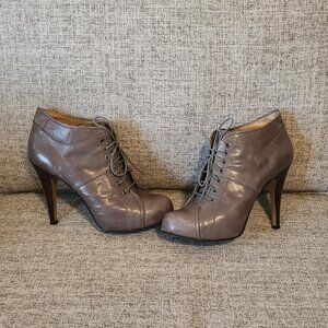 Cute leather ankle boots by Nine West in a soft gray color. Lace up front with 4" heel. Gently used condition with minimal signs of wear.