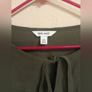 Nine West Green Tie Front 3/4 Sleeve Blouse