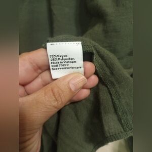 This elegant green blouse from Nine West features a relaxed fit with a stylish tie front and 3/4 sleeves. The solid color and soft fabric make it a versatile addition to any wardrobe, perfect for both casual and dressy occasions.