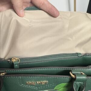 Nine West Green Tote Bag Hand Painted Ladybug Floral Leaf Purse Shoulder Satchel