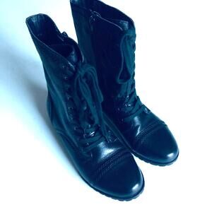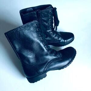Nine West 'Haileigh' Women's 6.5 Black Leather Lace Up Combat Boot Moto
