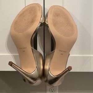 Beautiful metallic gold heels, worn once for special occasion. 4” heel.