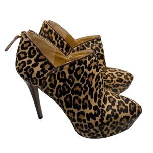 Nine West Heels Womens 5.5 Haywire Platform Booties Cheetah Leopard Fur Mobwife