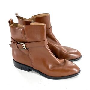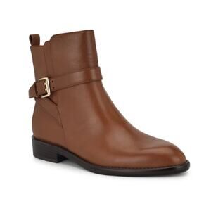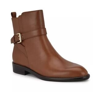 Nine West Hoken Boots 7 NWOT Brown Leather Ankle Booties Buckle Academia Capsuel