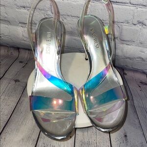 Stunning holographic strappy heels with a sleek design. Perfect for a night out.