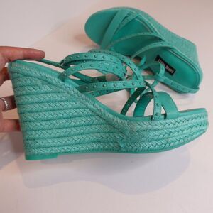 Nine West Hunda Espadrille Platform Wedges Sandal Green Size 6.5