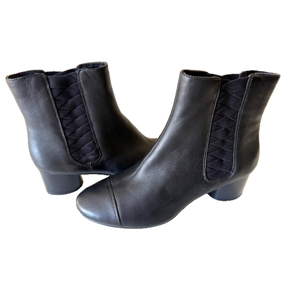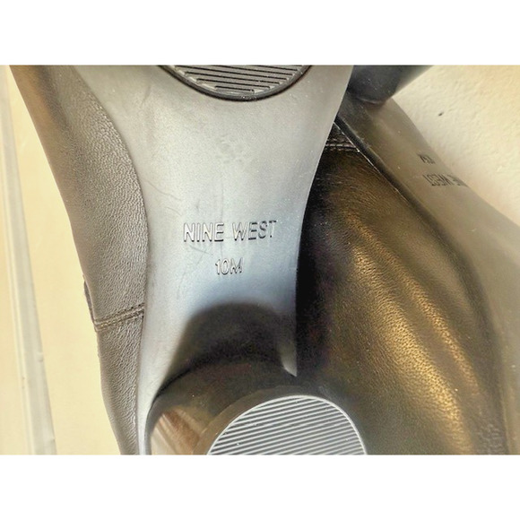Nine West Icelando Black Leather Round Heeled Booties Boots Comfy Sz 10