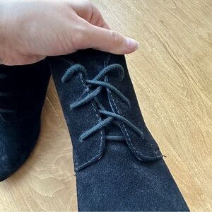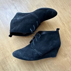 Nine West Illusion Wedge Ankle Booties, Black Suede Heeled Boots, Size 10M
