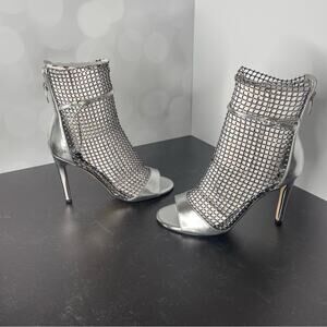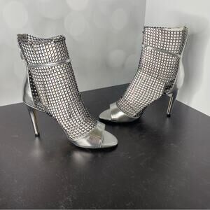 Nine West Imery Mesh Peep Toe Booties Silver Women’s Sz 6.5