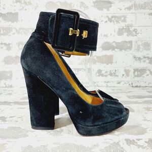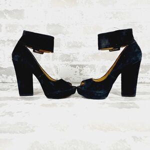 Nine West Ivorie Navy Blue Ankle Strap Buckle OpenToe Platform Chunky Heels i635
