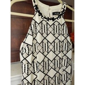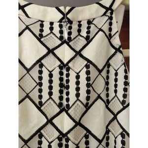Nine West Ivory/black Geometric Sleeveless Beaded Neck Dress Size 4