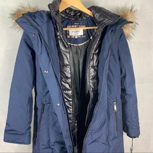 Nine West Jacket Hooded Long Parka Navy Small