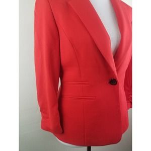 Nine West Jacket Women 2 Blazer Bright Orange Red Cotton Ruched Sleeves