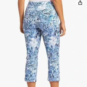 Nine West Jean Women Size 14 Chrystie Capris Soft Twill Touch Denim Blue Print