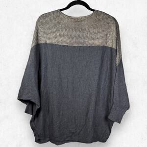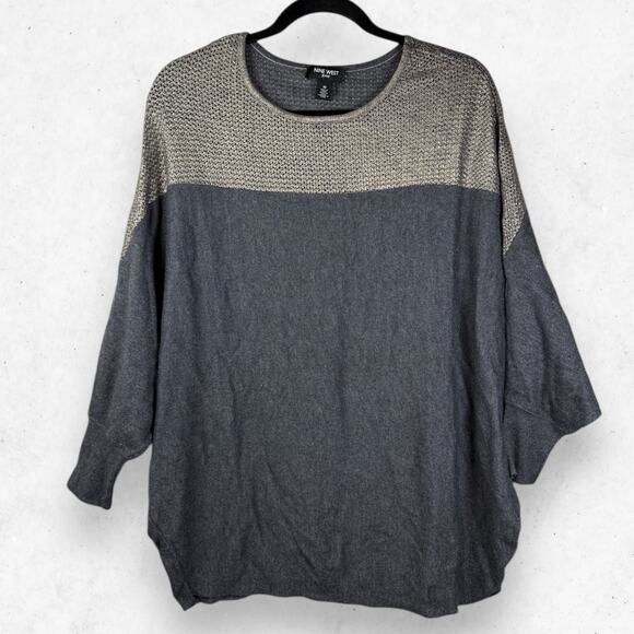 Nine West women’s batwing top in size medium with 3/4 sleeves and two-tone gray design. Preloved with light wear; please review photos.