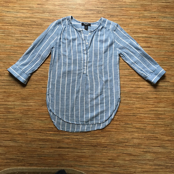 Nine West Jeans Lucy Shirt Top Blouse Blue Stripe Faded Look Size S