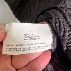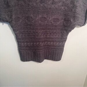 Good condition, minor wear. Nine West Jeans. Short sleeve turtleneck sweater. Dolman sleeves. Dark gray. Cableknit. Size small. 100% acrylic. Pit to pit laying flat 18” Shoulder to hem 22” Sleeve (shoulder seam to hem) 8”. All measurements are approximate and taken lying flat. Smoke free home. No trades, offers welcome.