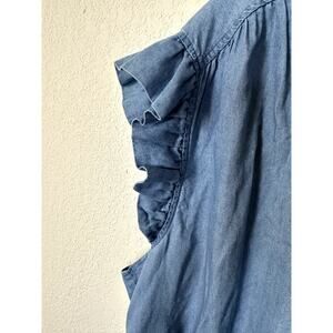 Nine West Jeans Women’s 2X Denim Button-Front Tank Top Ruffled Shoulders Blue