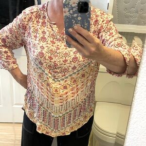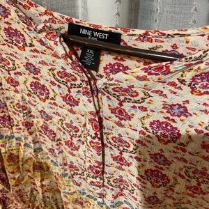 Nine West Jeans XXL boho multi colored blouse 3/4 sleeves and front buttons