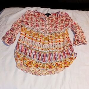 Nine West Jeans womens hippy style top with 3/4 sleeves and 3/4 length button down top